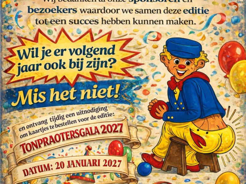 Inschrijven voor Tonpraotersgala 2027 kan nu al!